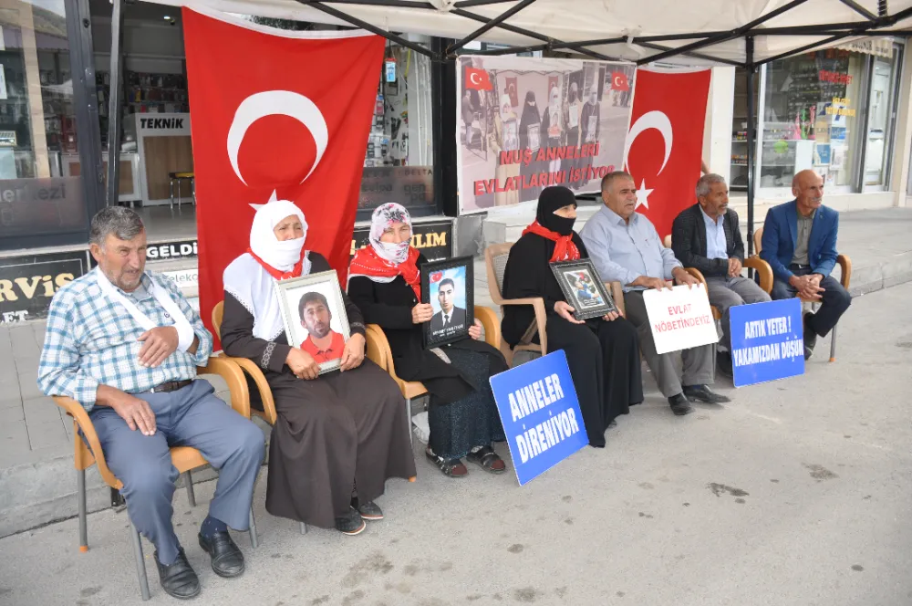 Muş’ta terör örgütü PKK tarafından çocukları dağa kaçırılan ailelerin evlat nöbeti devam ederken, evladını DEM Parti'den isteyen ailelerin sayısı ise bu hafta 47’ye yükseldi. Çocuklarını terör örgütü PKK’nın pençesinden kurtarmak isteyen ailelerin DEM Parti il binası önündeki eylemi devam ediyor. Aileler, çocuklarının en kısa sürede güvenli bir şekilde evlerine dönmesini beklerken, toplumun da bu konuda destek olmasını istedi. Çocuklarına kavuşma ümidiyle her hafta çarşamba günü DEM Parti il binası önünde bir araya gelen aileler, "Anneler direniyor" ve "Yeter artık evlatlarımızı bırakın" pankartları açtı. Anne ve babalar, yıllardır hasretle bekledikleri çocuklarına teslim olmaları için çağrıda bulundu.