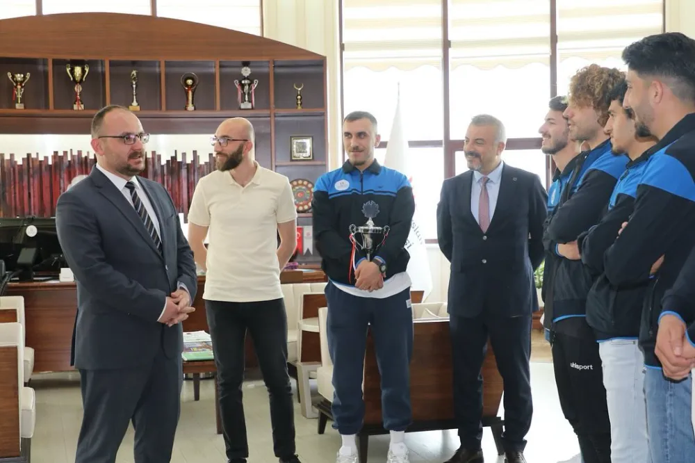 Erzurum’da düzenlenen Üniversiteler Arası Bölgesel Lig Müsabakaları’nda 2’nci olan Muş Alparslan Üniversitesi (MAUN) Futsal Takımı, Rektör Prof. Dr. Mustafa Alican’ı ziyaret etti.