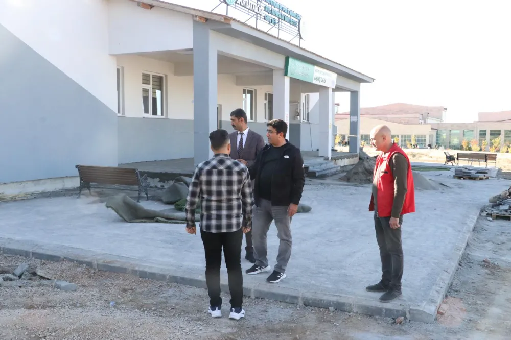 Genç ofiste yapılan çevre düzenleme işlerini inceleyen Gençlik ve Spor Müdürü Mehmet Arif Taşdemir, “çalışmalar tesislerimizden faydalanan gençlerimizin rahatı ve konforu için yapılıyor”