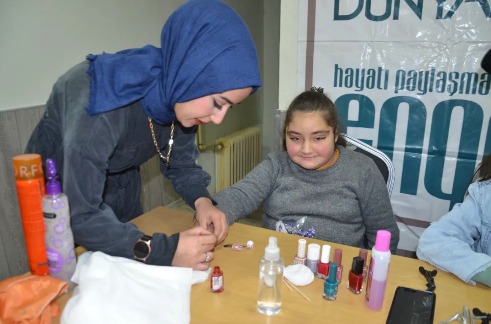 3 Aralık Dünya Engelliler Günü için düzenledikleri programda çocukların saç bakımlarını yaptıklarını ve ellerine oje sürdüklerini belirten gönüllü kuaför ustalarından Hatice Tarhan, "3 Aralık Dünya Engelliler Günü için bir program düzenledik. Çocukların saç bakımlarını yaptık, ellerine ojeler sürdük. Onları mutlu etmek ve yüzlerindeki sevinci görmek bizler için büyük bir motivasyon oldu. Buraya geldik, inşallah bu çalışmaların daimî olmasını umut ediyorum. İlerleyen zamanlarda aileleri çocuklarını salonumuza getirebilir; bugün gelemeyen ya da burada bulunamayan çocuklar için de salonumuza gelerek ücretsiz hizmet vermek ve bakımlarını yapmak isteriz" ifadelerini kullandı.