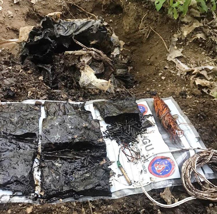 Muş’ta Kurban Bayramı öncesi polis ve jandarmanın istihbarat çalışmaları neticesinde kırsalda PKK terör örgütü mensuplarına ait 60 kilogram el yapımı patlayıcı (EYP) ele geçirildi.