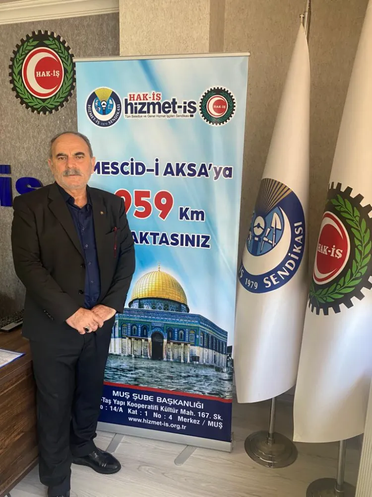 HAK-İŞ Muş İl Başkanı Yaşar Kalır, Filistin ve Gazze’de Siyonist İsrail tarafından bir insanlık suçu işlendiğini, masum insanların büyük bir vahşetle karşı karşıya kaldığını belirterek, “HAK-İŞ olarak, günlerdir aç-susuz bırakılan, ilaç ve her türlü insani yardımdan mahrum bırakılan Gazzelilere ulaştırılmak üzere üyelerimizin katılımına yönelik bir yardım kampanyası başlatma kararı aldık. ‘Filistin için Haydi HAK-İŞ, Filistin’in Yaralarını Birlikte Saralım, Sen de Bağış Yap, Filistin’e Yardım Elini Uzat’ diyoruz” dedi.