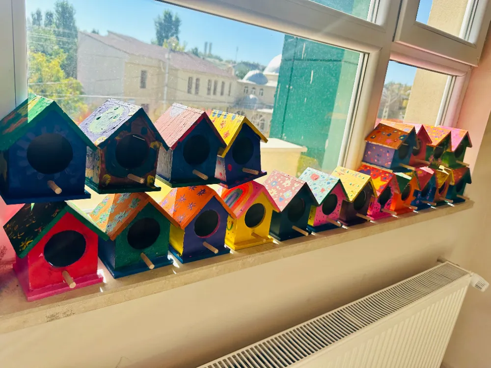 İLKOKUL ÖĞRENCİLERİNDEN RENGARENK KUŞ YUVASI