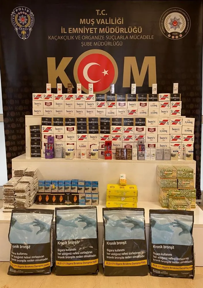Muş'ta polis ekipleri tarafından düzenlenen operasyonlarda gümrük kaçağı sigara ve tütün ele geçirildi.