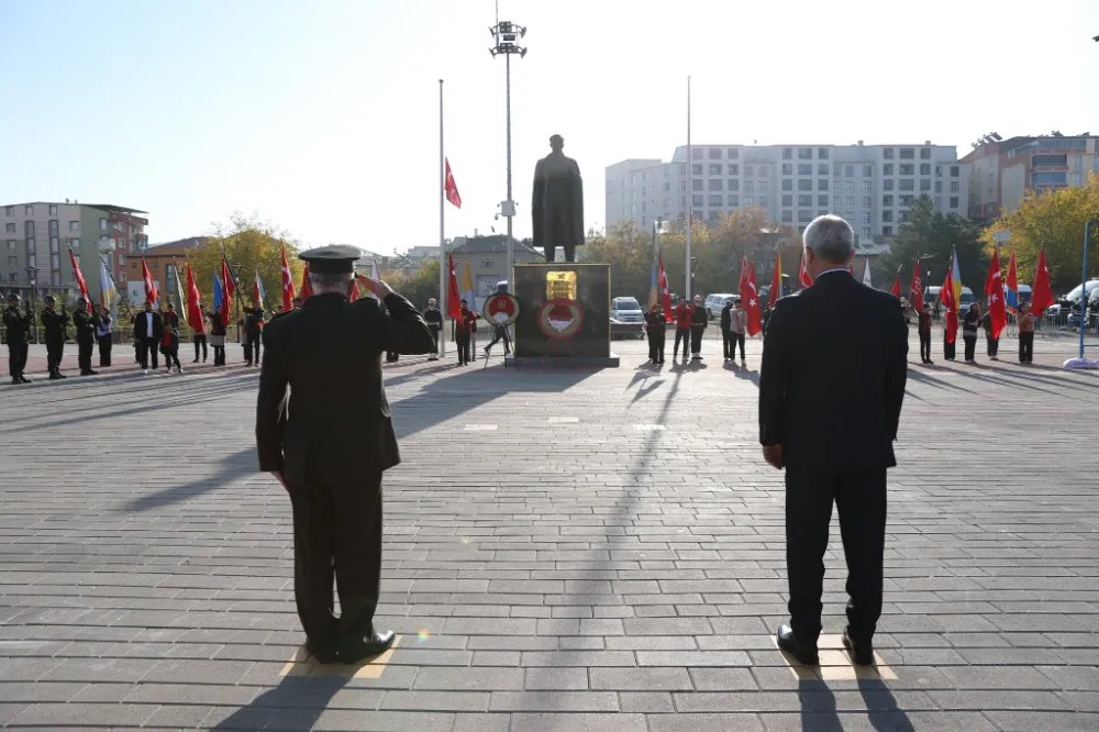 Kent Meydanı’nı dolduran protokol üyeleri, öğrenciler ve vatandaşlar, sabahın erken saatlerinde Atatürk Anıtı önünde bir araya geldi. Tören, Valilik ve Garnizon Komutanlığı çelenklerinin Atatürk Anıtı’na sunulmasıyla başladı. Saat 09.05’te sirenlerin çalmasıyla birlikte kentte hayat adeta durdu; vatandaşlar ve öğrenciler saygı duruşunda bulundu, ardından İstiklal Marşı hep bir ağızdan okundu.