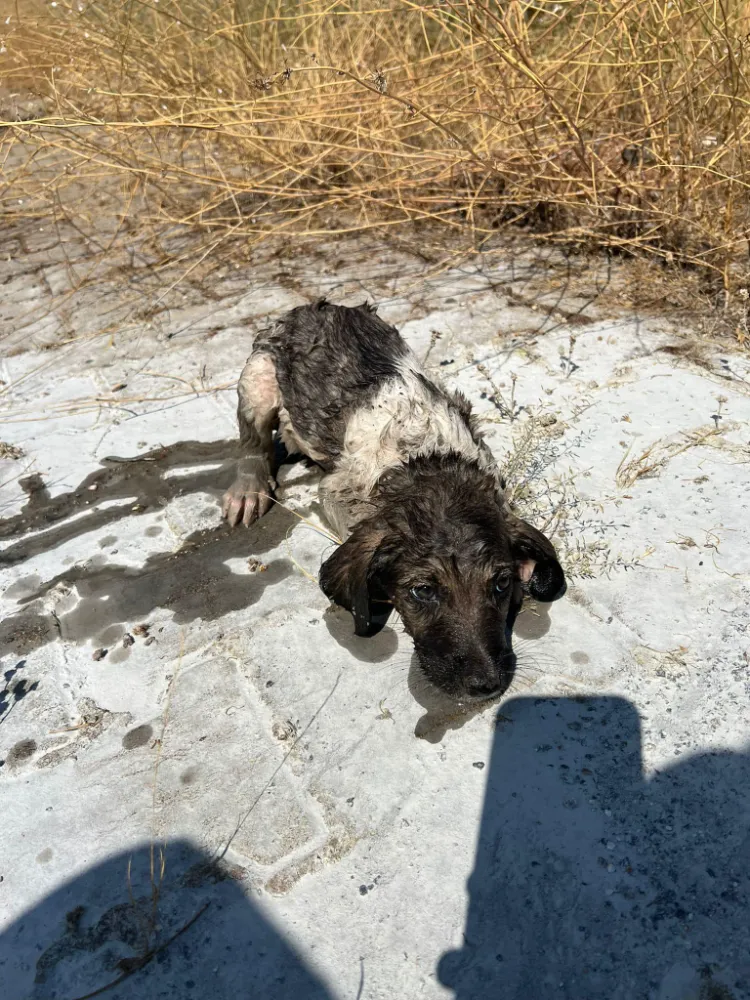 Veteriner hekimler tarafından sağlık kontrolleri yapılan yavru köpek, tekrardan yaşam alanına bırakıldı.
