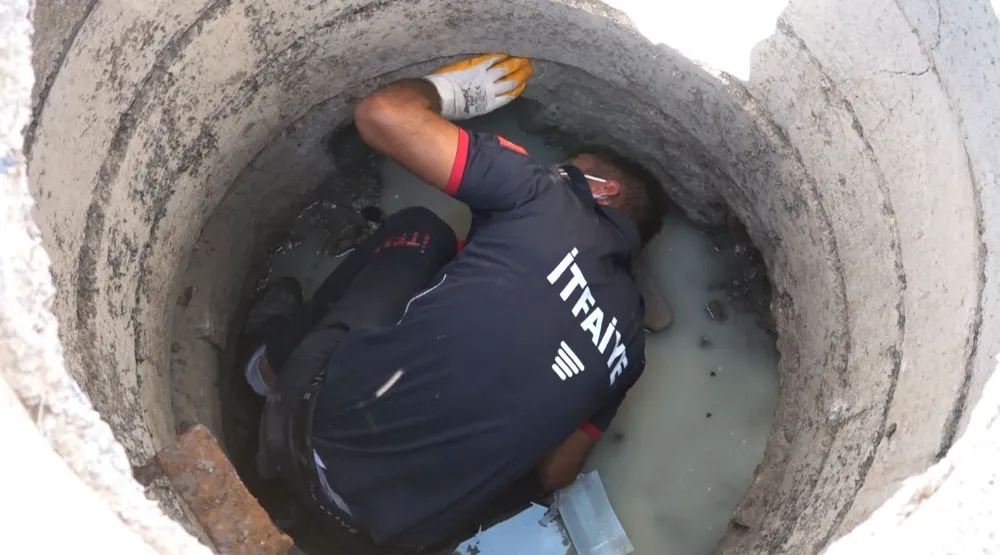 KANALİZASYON ÇUKURUNA DÜŞEN YAVRU KÖPEK KURTARILDI