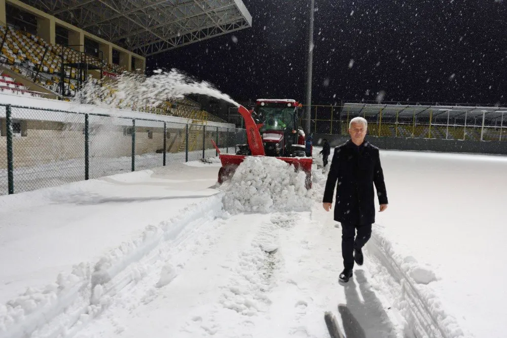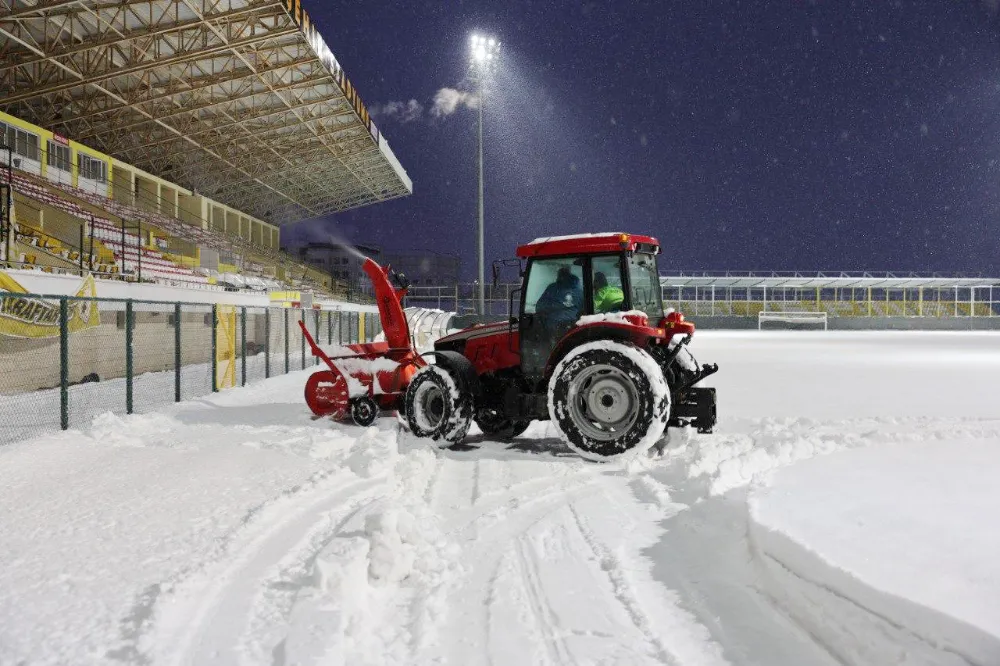 Kar yağışının stadyum zemininde ciddi birikintilere yol açması üzerine Gençlik ve Spor İl Müdürlüğü ekipleri hızla harekete geçti. Gençlik ve Spor Bakanlığı tarafından sağlanan teknik donanım ve ekipmanlar kullanılarak sahada kar temizleme çalışmaları başlatıldı. Özellikle kar savurma makineleriyle yürütülen çalışmalarla, futbol oynanabilir bir zemin oluşturulması hedefleniyor.