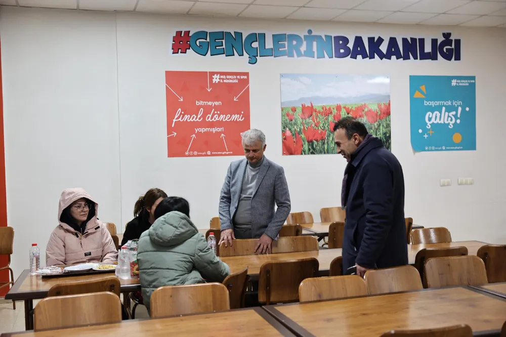 Gençlik ve Spor İl Müdürü Yusuf Kılıç, Müştak Baba ve Sultan Alparslan öğrenci yurtlarında yaptığı incelemelerde barınma, güvenlik, yemekhane ve sosyal alanları yerinde değerlendirerek öğrencilerin talep ve önerilerini dinledi.