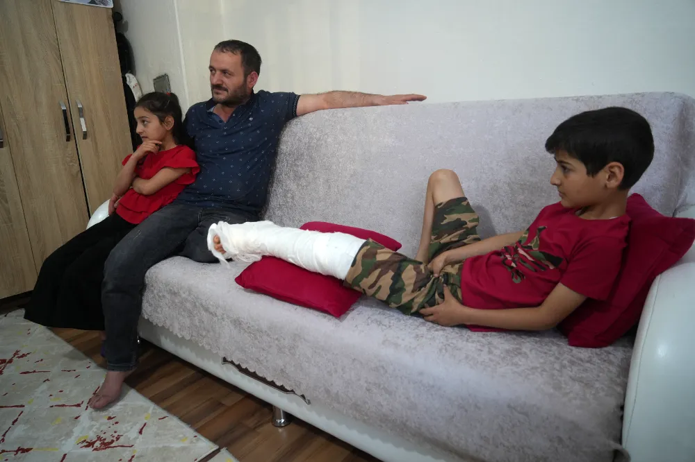 Taburcu olduktan sonra eve gelen Eşim ve ailesi, sahipsiz köpeklere bir an önce çözüm bulunmasını istiyor. Sokakta köpek saldırısına uğrayan 9 yaşındaki Muhammet Hamza Eşim, köpeklerin bir an önce toplatılmasını isteyerek, “Benle kuzenim dışarıda oyun oynuyorduk. Köpek bana saldırdığı için kaçtım ve duvardan atladım. Sonra oradaki esnaf geldi köpekleri kovdu. Yükseklikten atladığım için bacağım kırıldı. Ambulansı çağırdılar, sonra hastaneye gittik. Köpek saldırdığında çok korktum. Okula giderken köpeklerden korkuyoruz, köpeklerin toplatılmasını istiyoruz. Bu köpeklere bir çare bulunsun. Ameliyat oldum ve ayağımı alçıya aldılar. Çok ağrıyor” dedi.