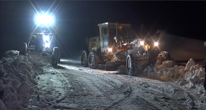 KÖY YOLLARINDA KARLA MÜCADELEDE GECE MESAİSİ
