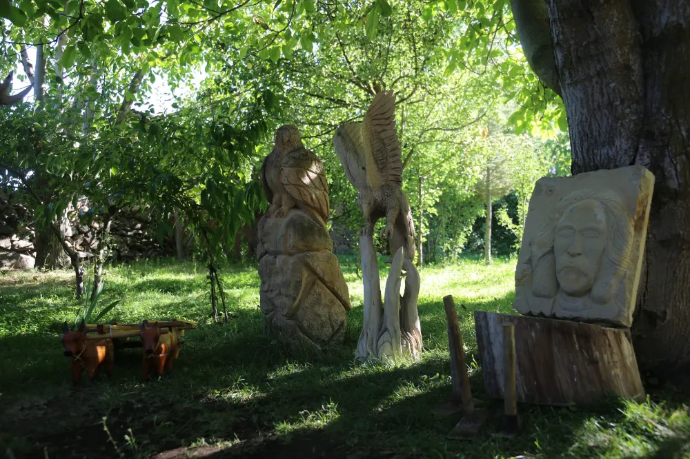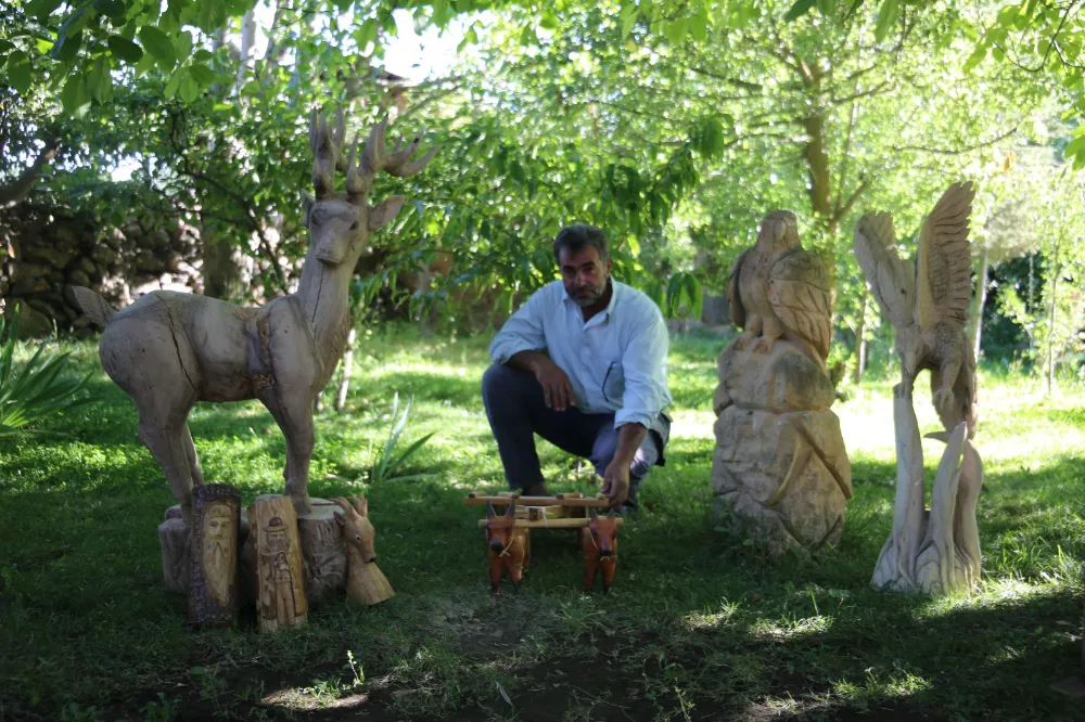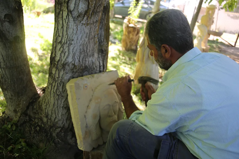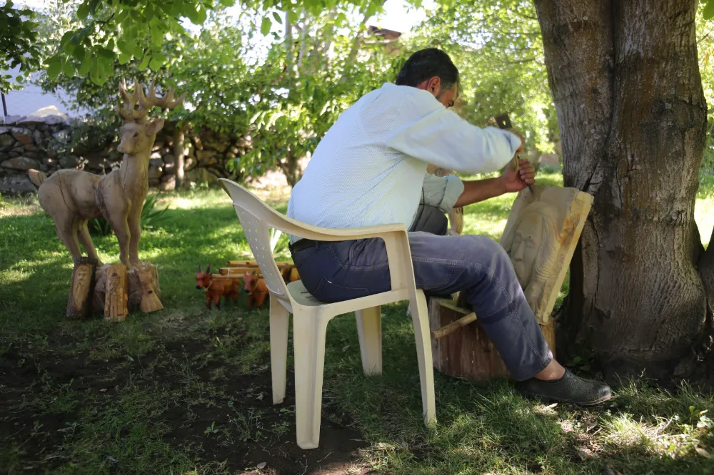 Varto’da yaşayan çiftçi Turabi Yoloğlu, kuruyan ağaç dalları ve kireç taşlarını kendi atölyesine dönüştürdüğü bahçesinde sanata dönüştürüyor. El emeğiyle ürettiği eserlerinde modern alet kullanmayan Yoloğlu, özellikle hayvan figürleri ve taş çeşmeler yaparak doğaya zarar vermeden sanatını sürdürüyor.