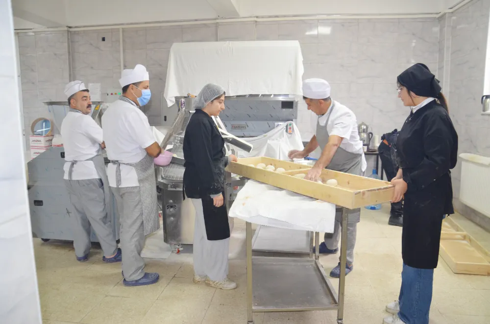 Muş Nusret Sarman Mesleki ve Teknik Anadolu Lisesi öğrencileri, okulda kurulan fırında günlük binlerce ekmek üretirken uygulamalı meslek eğitimi alıyor. Hamurun yoğrulmasından şekil verilmesine kadar her aşamada deneyim kazanan öğrenciler, stajlarla da sektöre hazırlık yapıyor.