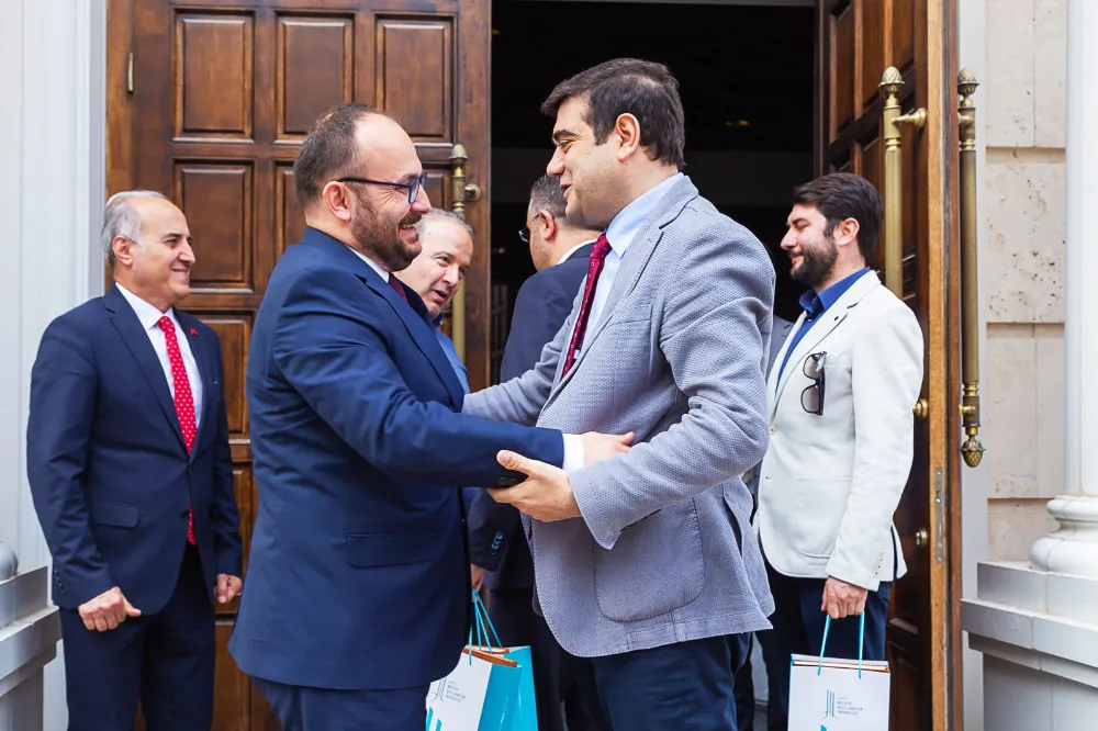 Ankara Müzik ve Güzel Sanatlar Üniversitesi'nin muazzam ev sahipliğinde gerçekleşen görüşmeye Rektör Danışmanları Doç. Dr. Mehmet Özalper ve Dr. Öğretim Üyesi Ender Can Dönmez'in yanı sıra Ankara Müzik ve Güzel Sanatlar Üniversitesi'nden Genel Sekreter Ünal Aydoğan, Personel Daire Başkanı Mustafa Fırat ve Rektör Danışmanı Prof. Dr. Gökhan Ekim de katıldı.