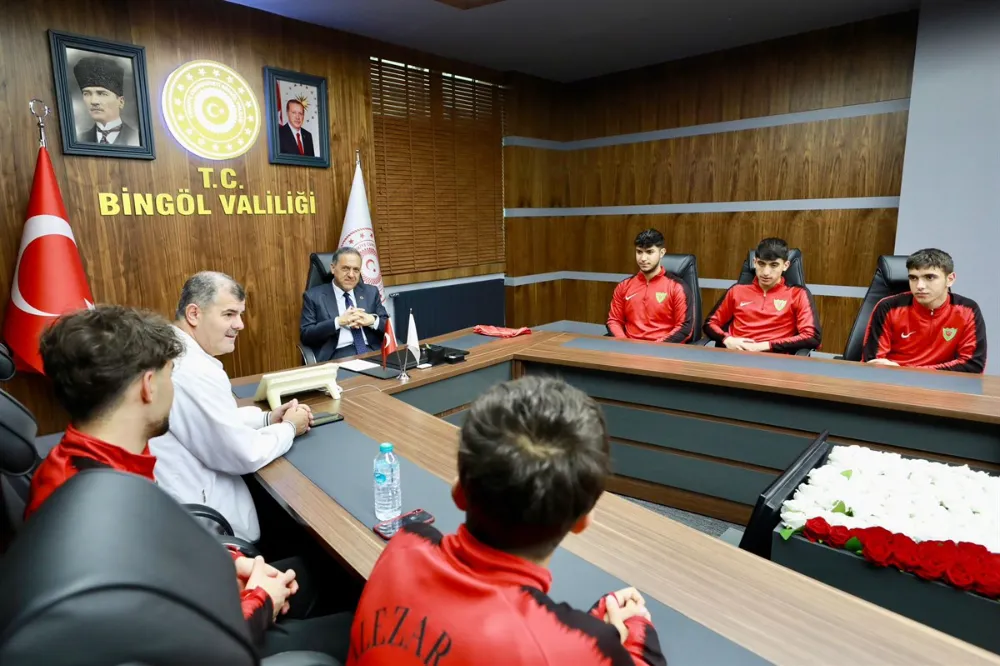 Bingöl’de düzenlenen Türkiye Voleybol Federasyonu Gençler Şampiyonasına katılan Muş Lalezar Spor Voleybol Takımı yönetici, antrenör ve sporcuları, Bingöl Valisi Ahmet Hamdi Usta’yı makamında ziyaret etti.