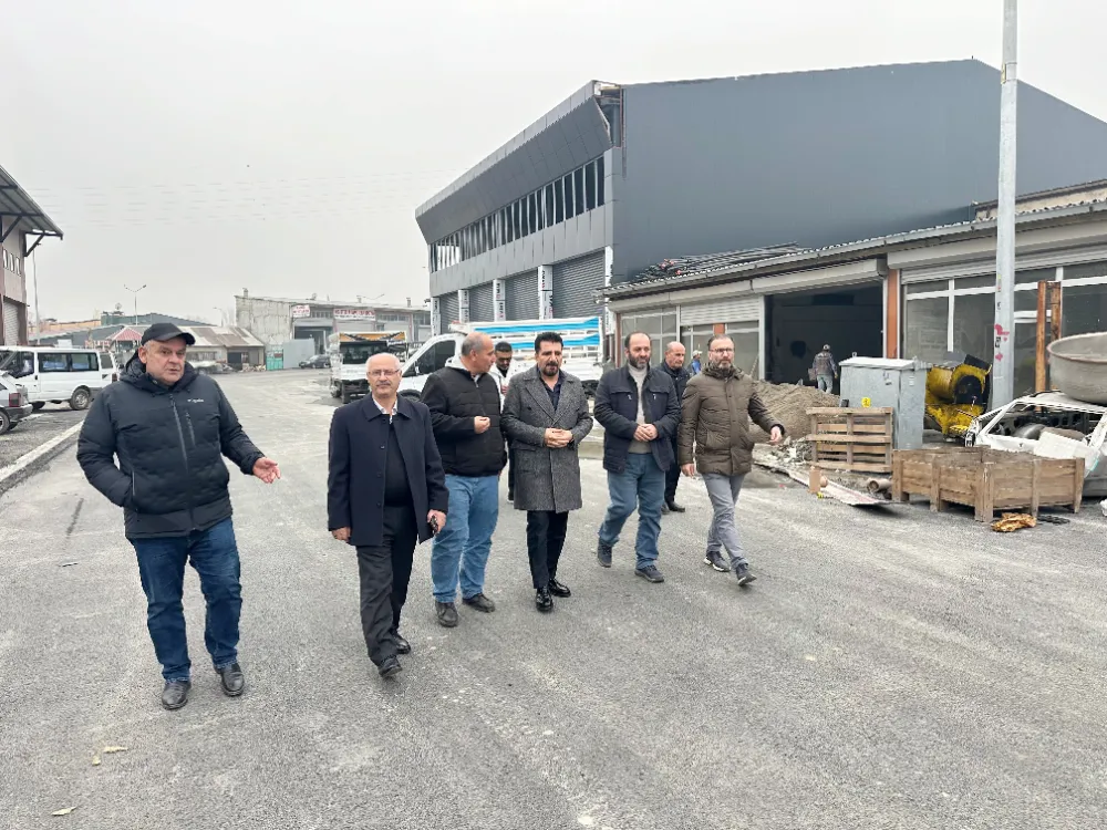 Küçük Sanayi Sitesi’nde yapılan asfalt çalışmalarını inceleyen ve burada faaliyet gösteren üyeleri ziyaret eden Başkan Koç, asfalt döşeme çalışmalarının yapılmasında emeği geçenlere teşekkür etti