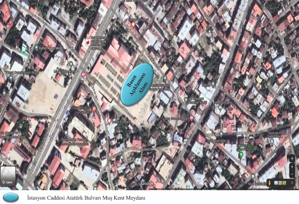 Valilik, 2025 yılı için basın açıklaması yapılabilecek alanları da belirledi. Buna göre, İstasyon Caddesi Atatürk Çocuk Parkı önü (500 metrekare) ve Atatürk Bulvarı üzerindeki Muş Kent Meydanı (20 bin metrekare) basın açıklamalarının yapılabileceği yerler olarak açıklandı.