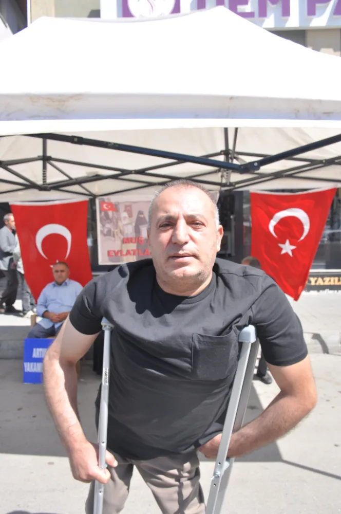 Muş’ta çocukları terör örgütü PKK tarafından kaçırılan aileler, DEM Parti il binası önündeki oturma eylemini kararlılıkla sürdürüyor. Eyleme katılarak ailelere destek veren Muş Bedensel Engelliler Derneği Başkanı Bedri Korkmaz, kentteki sivil toplum kuruluşlarını desteğe davet etti.