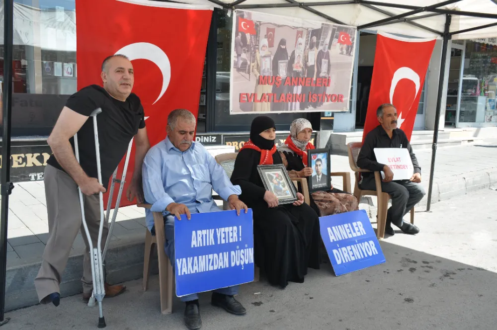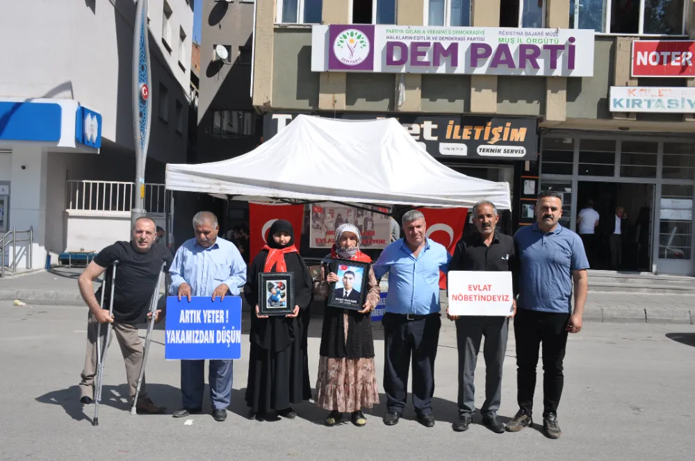Muş’ta çocuklarını terör örgütü PKK’nın pençesinden kurtarmak isteyen ailelerin DEM Parti il binası önündeki eylemi devam ediyor. Aileler, çocuklarının en kısa sürede güvenli bir şekilde evlerine dönmesini beklerken, toplumun da bu konuda destek olmasını istedi. Çocuklarına kavuşma ümidiyle her hafta çarşamba günü DEM Parti il binası önünde bir araya gelen aileler, "Anneler direniyor" ve "Yeter artık evlatlarımızı bırakın" pankartları açtı. Anne ve babalar, yıllardır hasretle bekledikleri çocuklarına teslim olmaları için çağrıda bulundu.