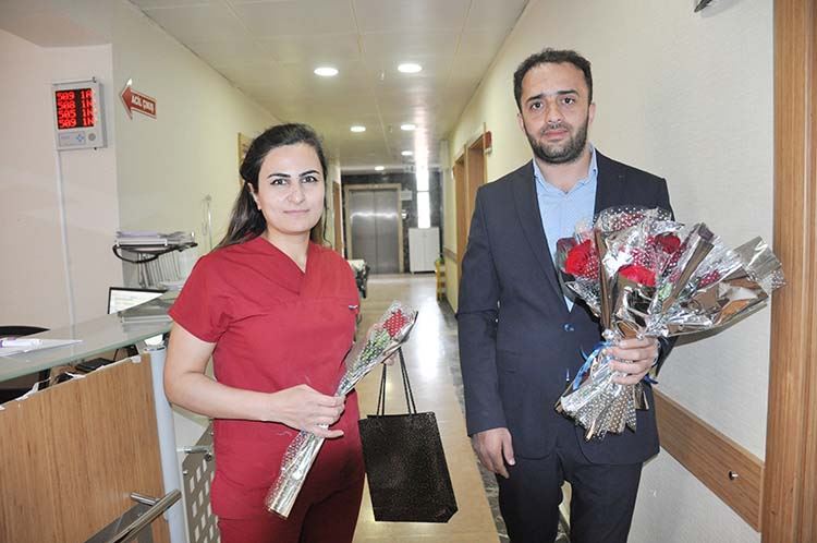 12-18 Mayıs tarihleri arasında kutlanan Hemşireler Haftası dolayısıyla devlet hastanesi ve sağlık kuruluşlarında görev yapan hemşirelere gül ve çeşitli hediyeler veren Muşlu iş insanı Ömer Akyıldız, Pandemi sürecinde hemşirelere b