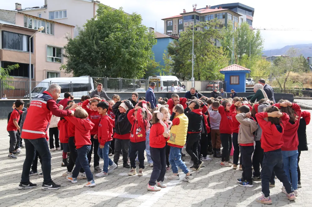 AFAD ve İl Sağlık Müdürlüğü ekipleri, öğrencilerle birlikte afet öncesi, sırası ve sonrasında yapılması gerekenleri uygulamalı olarak anlattı. Çocuklar afet sırasında soğukkanlı kalmayı, kendilerini ve çevrelerini korumayı öğrenirken; öğretmenler de acil durum senaryolarına hazırlık yapma imkânı buldu.