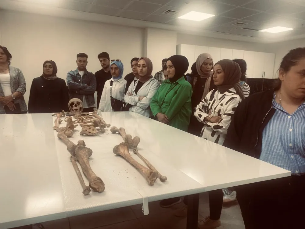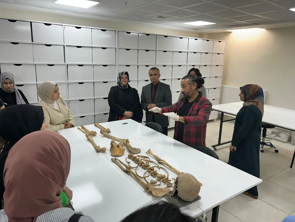 Antropolog Dr. Ali Akbaba’nın Malazgirt Savaş Alanının Tespiti Tarihi ve Arkeolojik Yüzey Araştırması Projesi kapsamında iskeletlerin antropolojik analizlerinin hangi çalışmaları kapsadığı, metodolojisi ve bu çalışmalardan elde edilen verilerin demografik analizlerde nasıl kullanıldığı, Antik DNA (aDNA) çalışmalarının tarihçesi ve çalışma safhaları hakkında brifing verdiği etkinlikte, öğrencilerin merak içeren soruları dikkat çekti. Selçuklu tarihinin ilk evrelerinde gerçekleşen bir olayın Malazgirt Savaşı’nın somut örnekleri karşısında etkilenen öğrenciler bu saha çalışmasından memnun olduklarını belirttiler.