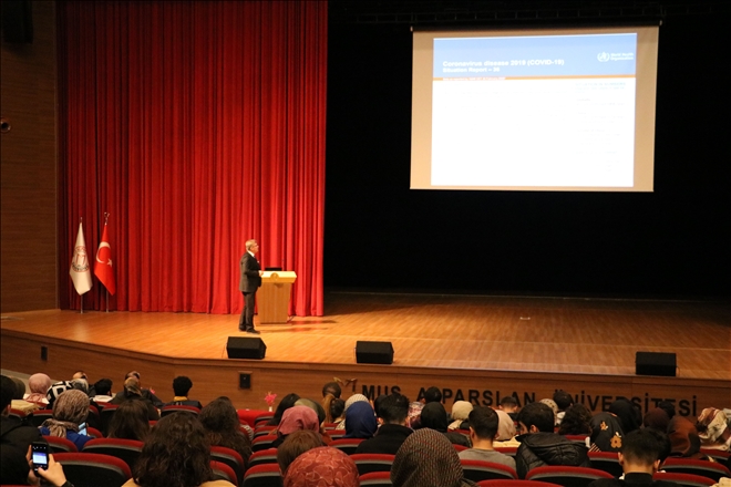Çin´de başlayan ve büyük bir hızla yayılarak çok sayıda insanın hayatını kaybetmesine neden olan ?koronavirüs salgını? hakkında ?Koronavirüs Salgını Bilgilendirme Toplantısı? yapıldı. Öğrencilerimizi salgın hakkında bilgilendirmek amacıyla 26 Şubat Çarşamba günü 1071 Malazgirt Kongre ve Kültür Merkezi´nde yapılan toplantıda Sağlık Hizmetleri Meslek Yüksekokulu (MYO) Müdürü Doç. Dr. Hanifi Körkoca, bir sunum gerçekleştirerek salgın hakkında önemli bilgiler paylaştı.