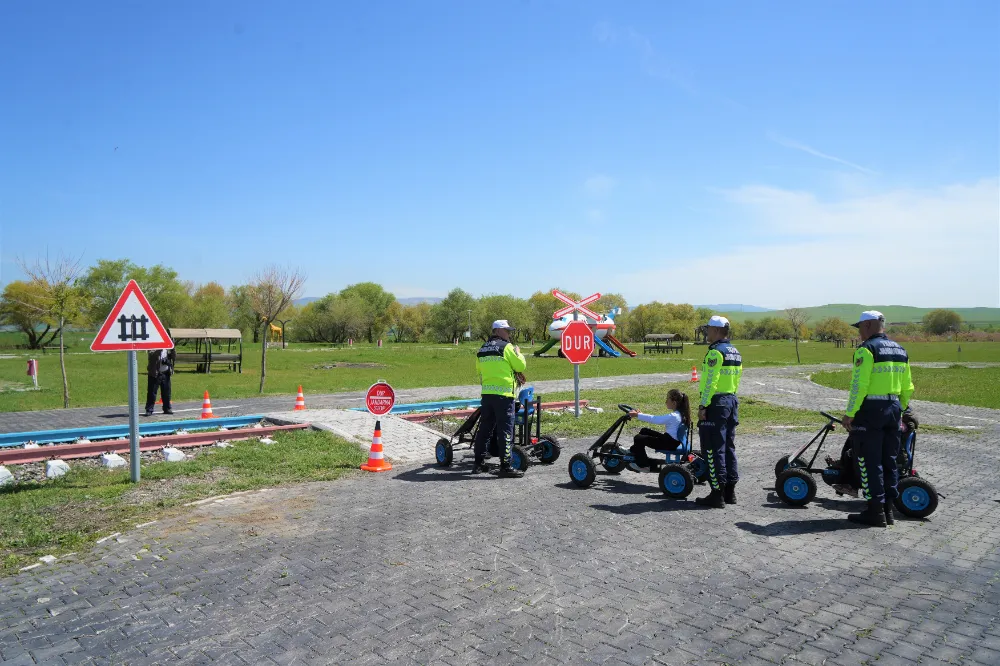Orgeneral Arif Çetin Trafik Eğitim Parkı’nda düzenlenen etkinlikte, çocuklara yolun karşı tarafına geçerken yaya geçidi ve üst geçitlerin kullanımı, hemzemin geçitlerde dikkat edilmesi gereken kurallar gibi temel trafik konuları uygulamalı olarak anlatıldı. Eğitim sonunda öğrencilere çeşitli hediyeler dağıtılarak hem bilgilendirici hem de keyifli bir etkinlik sunuldu.