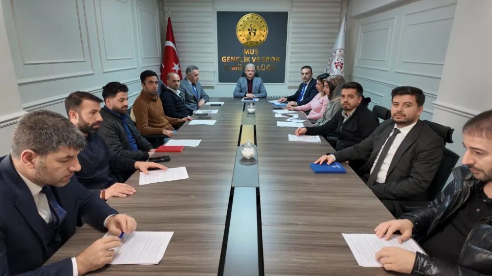 Muş Gençlik ve Spor İl Müdürlüğü’ne bağlı yurtlarda Ramazan ayı ve 2025-2026 eğitim öğretim yılının ikinci dönemi öncesinde sunulan hizmetlerin niteliğini artırmaya yönelik “Planlama ve Değerlendirme” toplantısı gerçekleştirildi. İl Müdürü Yusuf Kılıç başkanlığında yapılan toplantıda, yurtlarda faaliyet gösteren lokanta ve kantin işletmecileriyle bir araya gelinerek mevcut uygulamalar ele alındı, yeni dönem öncesi yapılacak düzenlemeler değerlendirildi.