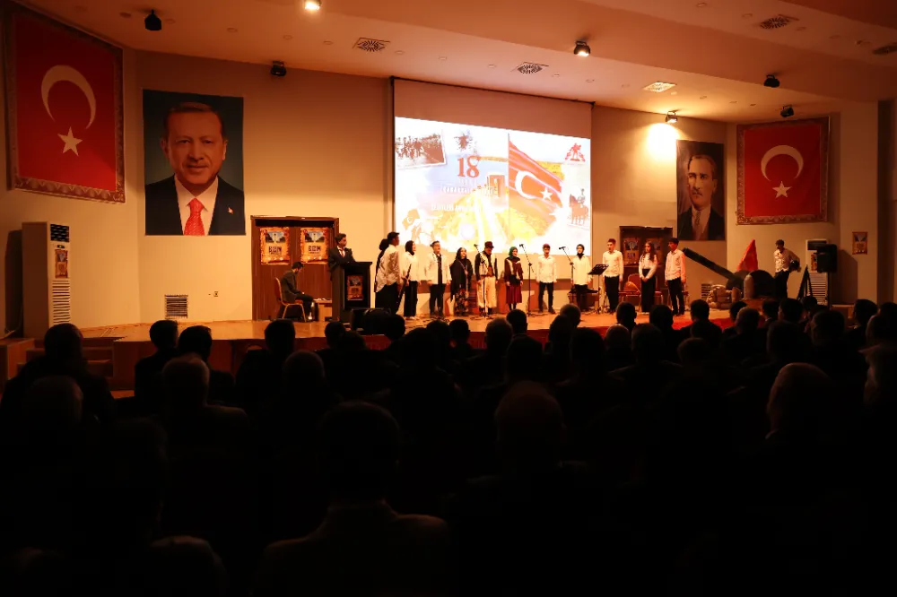 Muş TOBB Sosyal Bilimler Lisesi tarafından öğretmenevi konferans salonunda düzenlenen " 18 Mart Çanakkale Zaferi ve Şehitleri Anma Günü” programı, şiirlerin okunması ve oratoryo gösterisiyle devam etti.