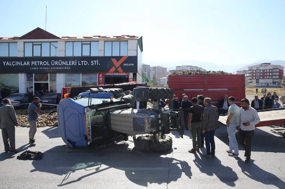 Muş-Bitlis kara yolunda 5 kilometresinde Abdullah Balkaya'nın kullandığı 49 AAT 976 plakalı şeker pancarı yüklü traktör devrildi. Sürücünün direksiyon hakimiyetini kaybetmesi sonucunda traktör ve römorkun yan devrilmesiyle yol kenarında park halinde bulunan bir otomobil de hafif hasar oluştu. Çevredekilerin haber vermesi üzerine bölgeye polis ekipleri yönlendirildi. Pancarların yolun bir kısmına yayılması sonucunda trafik bir süre tek şeritli devam etti.
