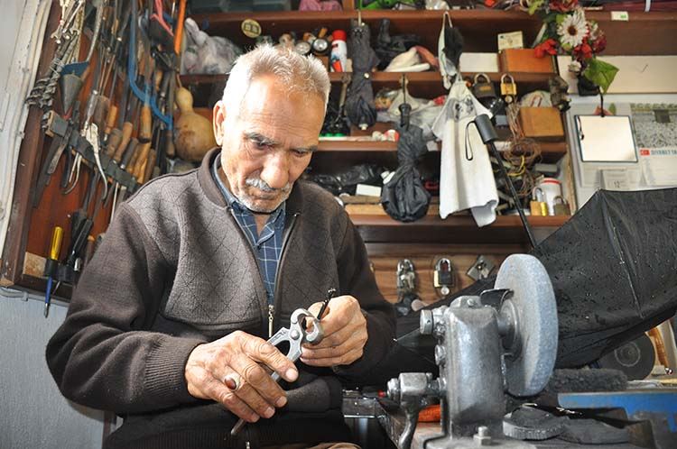 Eline alarak büyük bir özenle tamiratını yaptığı şemsiyelerin eskisinden daha iyi hale geldiğini söyleyen Buldu, “70 yaşındayım. 7 çocuk ve 20’i aşkın torun sahibiyim. Uzun yıllardır eski çarşı mevkiinde esnaflık yapıyorum. İlerleyen yaşıma rağmen, ilk günkü heyecanla işimin başındayım. Halen büyük bir zevkle çalışıyorum. Dayım şemsiye tamiratıyla uğraşıyordu. Eski şemsiyeler onun elinde yeniden hayat buluyordu. Ben küçük yaşlarda dayımın yanında bu işi öğrendim. Dayımdan öğrendiğim bu işi şimdi ben sürdürüyorum. 30 yıldır bu işi yapıyorum. Şemsiye tamiratı yanında asma kilit tamiri, makas ve bıçak bileme işi de yapıyorum. Kırık ve bozuk şemsiyeleri onarıyorum. Eski şemsiyelerin tamiratını yaparak, sahiplerine teslim ediyorum. Tabi tamiratını yaptığı şemsiyeler, eskisinden daha iyi oluyor. Millet yeni şemsiye alamıyor. O yüzden evde eskiyen, tamir gerektiren şemsiyelerini getirip, bende tamir ettiriyorlar. Birçok insan belki şemsiye tamiratının yapıldığından haberi yok ama ben halen ilerleyen yaşıma rağmen şemsiye tamiratı yaparak, yeniden hayat veriyorum” diye konuştu.