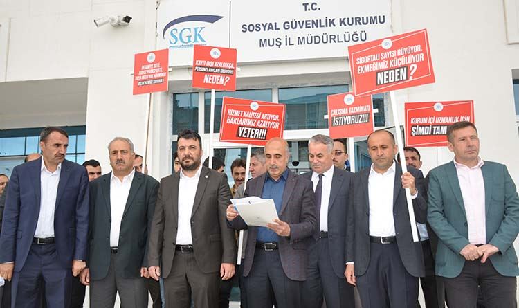 16-20 Mayıs tarihleri arasında kutlanan Sosyal Güvenlik Haftası dolayısıyla Memur-Sen Konfederasyonu hizmet kolu olan Büro Memur-Sen Muş Başkanlığı tarafından bir basın açıklaması yapıldı. Sosyal Güvenlik Kurumu (SGK) il Müdürlüğü önünde yapılan basın açıklamasına Memur-Sen İl Başkanı Mahir Barışan, Diyanet-Sen İl Başkanı Ferzende Aras, Birlik Haber-Sen İl Başkanı Sinan Karakaya, Kültür Memur-Sen İl Başkanı Yüksel Alataş ve sendika üyeleri katıldı.