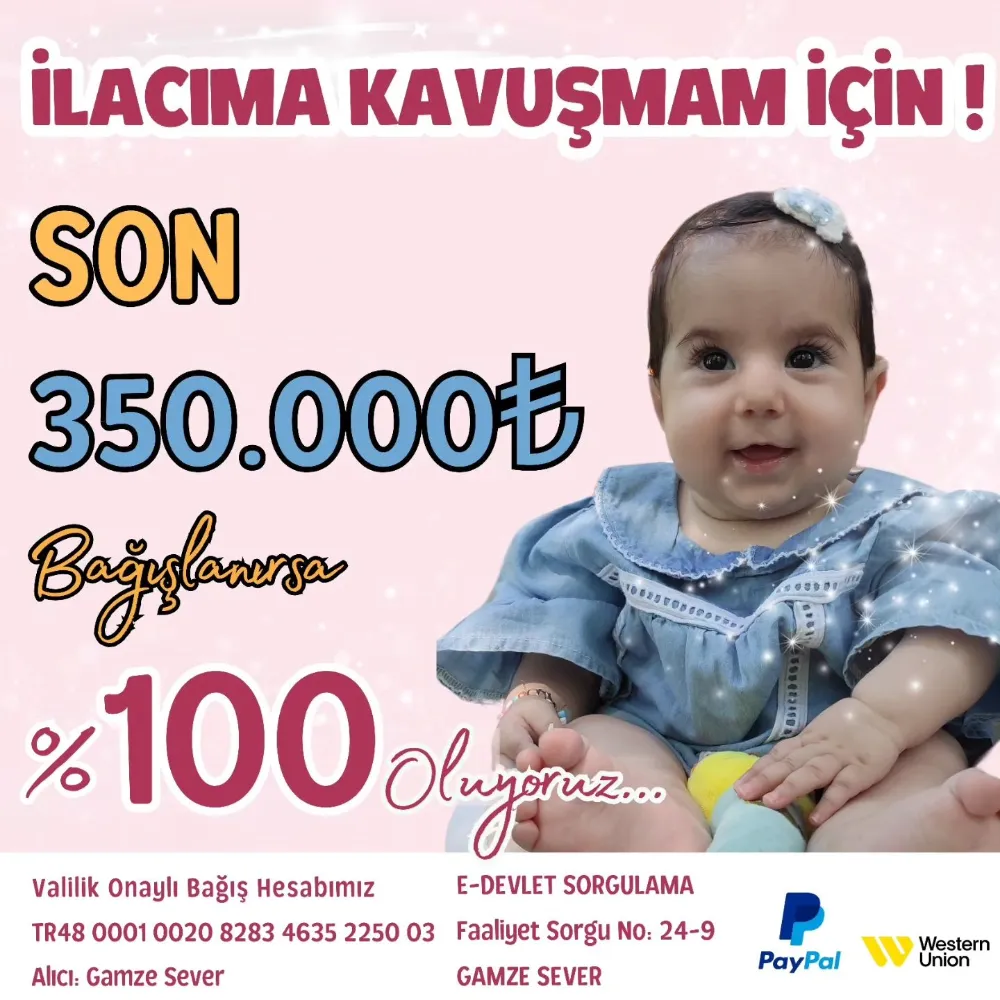 SMA HASTASI ASEL BEBEĞİN TEDAVİSİ İÇİN SON 350 BİN TL