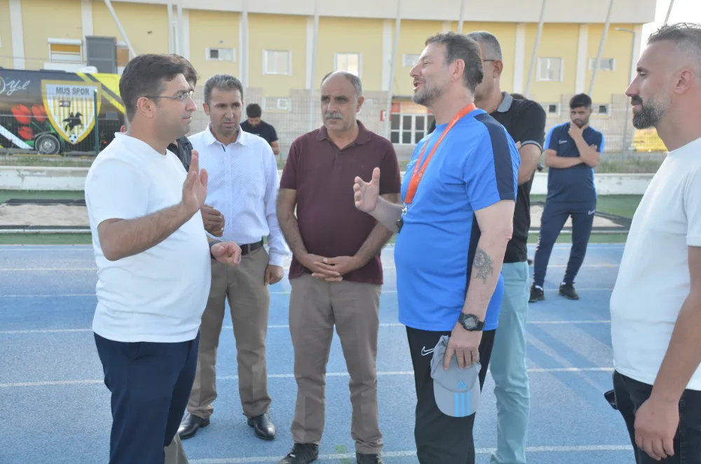 Stadyumda inceleme yapan Gençlik ve Spor İl Müdürü Mehmet Arif Taşdemir, ardından Stadyumun yanındaki antrenman sahasında çalışma yapan Muşspor’u ziyaret ederek teknik heyet ve futbolculara başarı dileklerini iletti.
