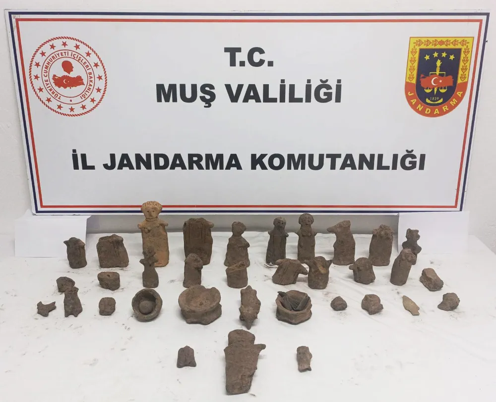Muş Valiliğinden yapılan açıklamada, İl Jandarma Komutanlığı Kaçakçılık ve Organize Suçlarla Mücadele Şubesi ile İstihbarat Şubesi ekiplerinin kaçakçılıkla mücadele kapsamında yürüttüğü çalışmaların devam ettiği belirtildi. Açıklamada, "Şenoba köyü mülki sınırları içinde KOM ve İstihbarat Şube Müdürlüğünce F.M. (34) isimli şahsın elinde tarihi eser olduğuna dair elde edilen istihbari bilgiler neticesinde CMK'nın 160 ve 161'nci maddeleri çerçevesinde Muş Cumhuriyet Savcısından alınan görevlendirme kararı gereği şüpheli şahısla irtibat kurularak 11 Nisan 2025 günü D-955 karayolu (Muş-Bingöl karayolu) üzerinde buluşma sağlanarak, F.M. ve C.S. (31) isimli şahıslar 42 parça tarihi eser olduğu değerlendirilen 4 bin yıl öncesi Demir Çağı Dönemi'ne ait heykel ve diğer objeler ile birlikte suçüstü yakalanmıştır" denildi.