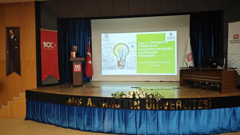 Muş Alpaslan Üniversitesi (MAUN) Teknik Bilimler Meslek Yüksekokulu (TBMYO) koordinasyonunda, Prof. Dr. Sabahattin Zaim Konferans Salonu’nda TÜBİTAK 2209 Üniversite Öğrencileri Araştırma Projeleri Destekleme Programı çağrısı ile ilgili bilgilendirici bir seminer gerçekleştirildi.