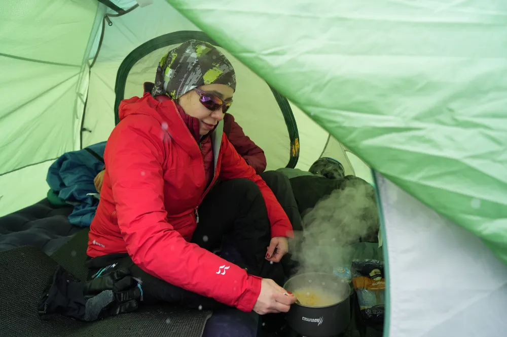 Eğitim boyunca dağcılar, çadırlarda yemek yaparak zorlu hava şartlarına adapte olmaya çalıştı. Barınma ihtiyacını karşılamak için ise kar bloklarından iglo inşa etti.