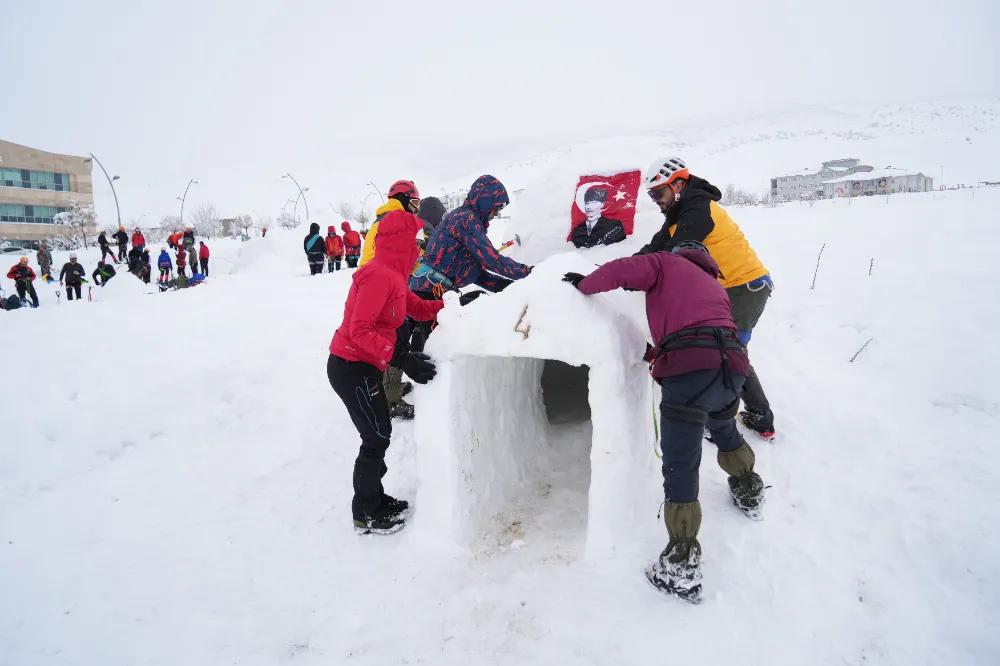 Eğitim programına katılan dağcılardan Gülcan Uysal, "İstanbul'dan geldim. Geceyi geçirmek için iglomuzu yaptık. Hava sıcaklığı şu an sıfırın altında 5 derece. Zorlu şartlar altında geceyi burada geçirmeyi planlıyoruz. İglo yapmak bizim için biraz zor oldu, ancak yeterli kar vardı ve iglo şu an geceyi geçirebilmemiz için iyi bir sığınak olacak. Doğada zorlu şartlar altında mahsur kalırsak barınmak için iglo yapıyoruz. Yapımı biraz uzun sürse de çadır yerine geçebiliyor. Teknik malzemeler kullanarak, kazma ve kürek gibi aletlerle önce kar bloklarını kesiyoruz, ardından iş bölümü yaparak hep birlikte inşa etmeye başlıyoruz" ifadelerini kullandı.