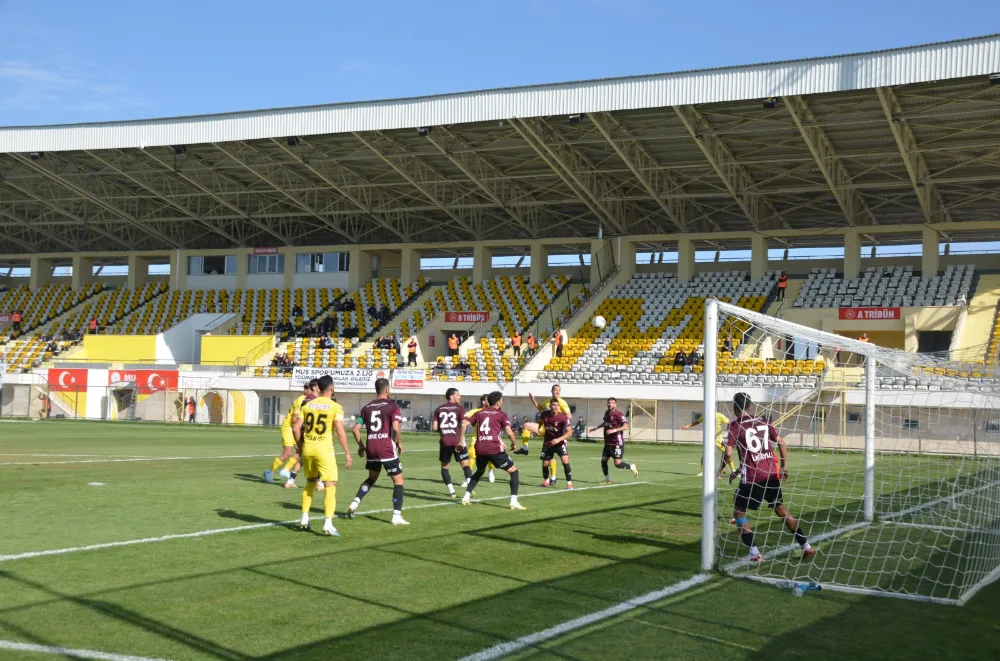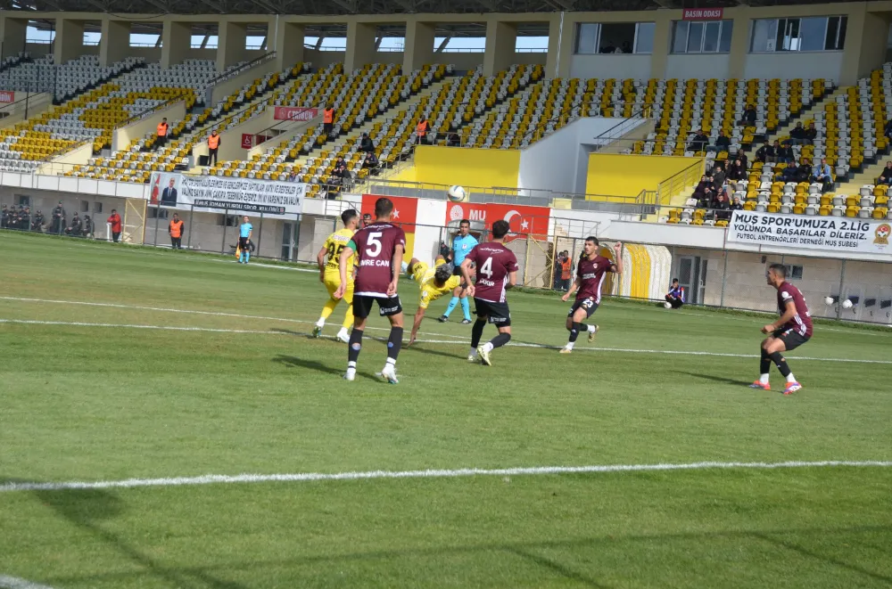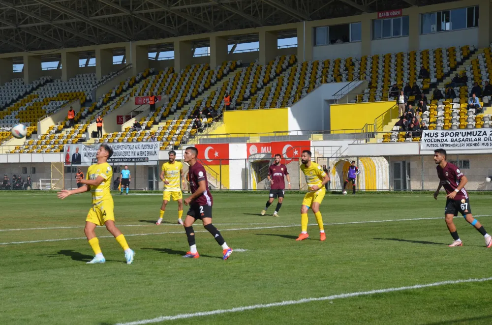 Muş Şehir Stadyumu’nda oynanan karşılaşmayı Halil Erdoğan, Muhammet Munir Dadı ve Vedat Güneş yönetti. Karşılaşmaya oldukça hızlı başlayan temsilcimiz, 21’inci dakikada Taha Ahmet Balsu’nun kaydettiği golle 1-0 öne geçti. Atak futbolunu sürdüren temsilcimiz, bu golden 10 dakika sonra Noyan Öz’ün attığı golle 2-0 öne geçti. Karşılaşmanın ilk yarısında bulduğu fırsatları değerlendiremeyen Muşspor, soyunma odasına 2-0 önde girdi.