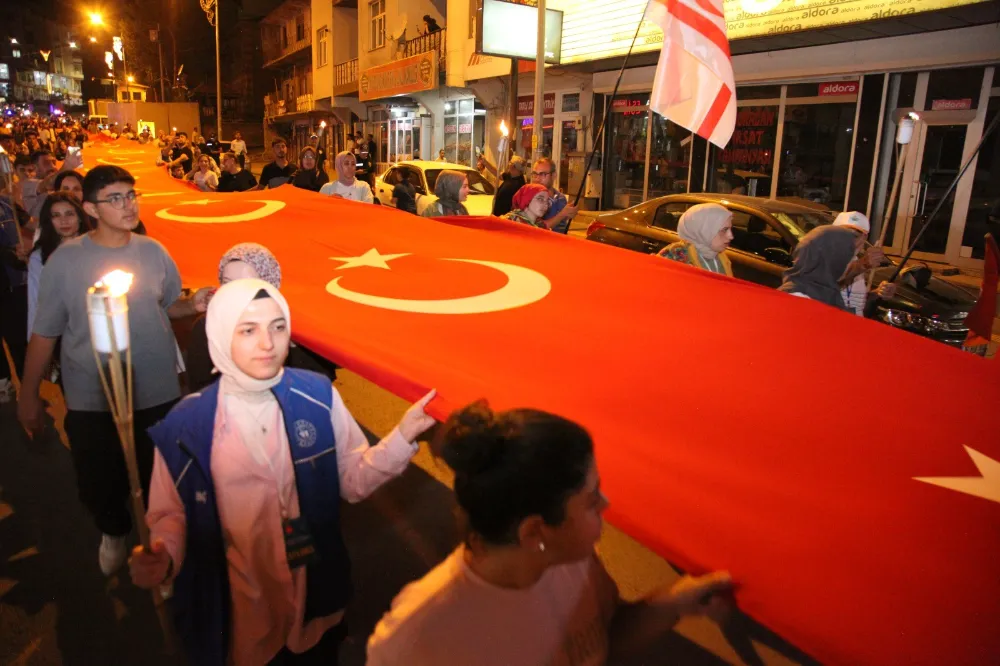 Vatandaşlar, Şehit Arslan Kulaksız'ın şehit edildiği caddede toplanarak Türk bayrağı ve meşaleler eşliğinde 15 Temmuz Meydanı önüne kadar yürüdü. Yürüyüşe katılanların coşkusu, Malazgirt'in tarihi zaferini bir kez daha yaşattı.