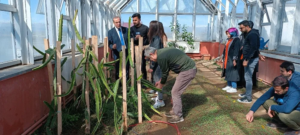 MAUN Rektör Yardımcısı ve Uygulamalı Bilimler Fakültesi Dekanı Prof. Dr. Yaşar Karadağ'ın da katıldığı uygulamalı eğitime, Uygulamalı Eğitime Uygulamalı Bilimler Fakültesi Bitkisel Üretim ve Teknolojileri Bölümü Dr. Öğr. Üyesi Ahmet Yenikalaycı ve Öğr. Gör. Dr. Fırat İşlek de eşlik etti. Prof. Dr. Yaşar Karadağ, yürütülen bilimsel araştırma ve denemeler konusunda öğrencilere bilgi verdi. Prof. Karadağ, Muş Alparslan Üniversitesi Muş Lalesi Uygulama ve Araştırma Merkezi Müdürlüğü serasında bulunan ve Muş’ta ilk defa Antalya Gazipaşa'dan getirtilen ejder meyvesi bitkisinin bu bölgede geleceği hakkında bilgiler verdi. Ayrıca Muş’ta ilk defa 3 üniversite ve 1 araştırma enstitüsü (Muş Alparslan Üniversitesi, Yozgat Bozok Üniversitesi, Sivas Cumhuriyet Üniversitesi ve Tokat Orta Karadeniz Geçit Kuşağı Tarımsal Araştırma Enstitüsü Müdürlüğü) iş birliği ile yürütülen sırasıyla salkım hanım, tay ve NQ7, isimli 3 goji beri çeşidi 4 farklı lokasyonda dikilmiş olup adaptasyon çalışmalarının devam ettiğini ifade etti.