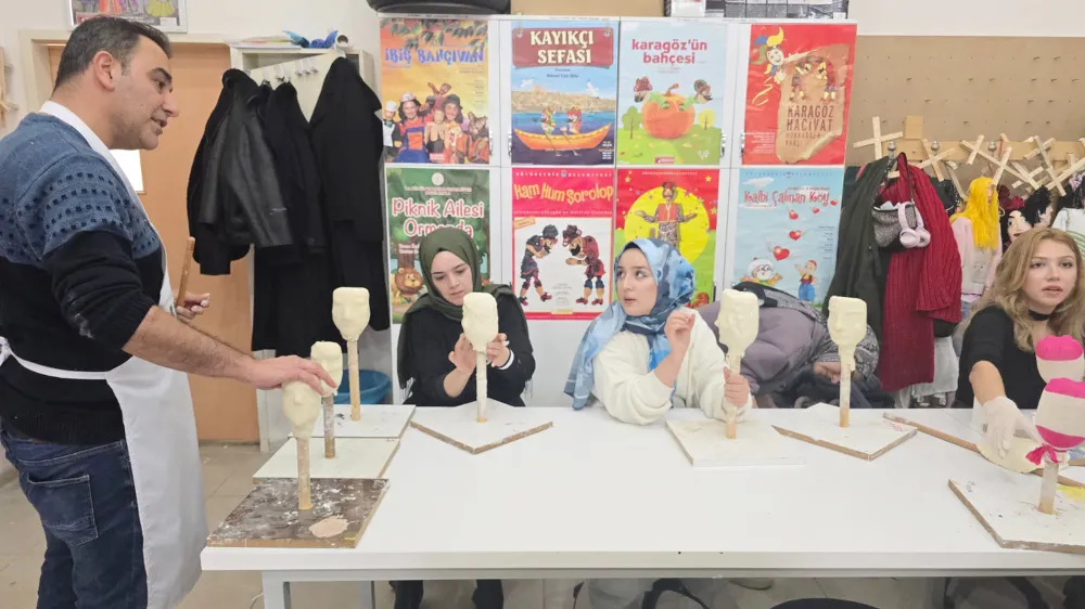 Üniversite bünyesinde kurulan Kukla ve Karagöz Yapım ve Oynatım Atölyesinde yürütülen çalışmalar kapsamında, öğrenciler günlük hayatta atık olarak görülen malzemeleri sanatsal ürünlere dönüştürüyor. Tuvalet kâğıdı, tutkal, bez parçaları ve ahşap gibi geri dönüşüm materyallerinden oluşturulan kuklalar, hem çevreye duyarlılığı teşvik ediyor hem de öğrencilerin el becerilerini geliştiriyor.