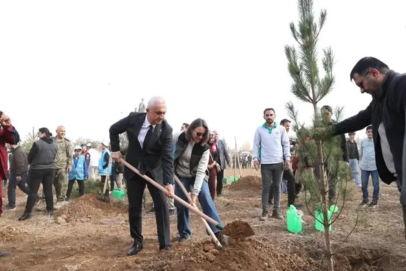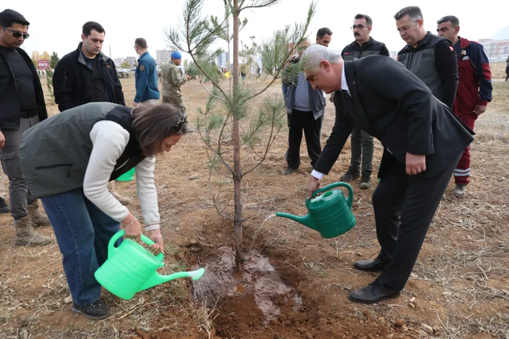 Son 3 yılda il genelinde 750 bin fidanı toprakla buluşturduklarını ifade eden Vali Çakır, "Bu yıl ise 228 bin fidanı toprakla buluşturmayı hedefliyoruz. Bugün de bu hedefin bir parçası olarak 20 binden fazla fidanı toprakla buluşturmanın mutluluğunu yaşıyoruz. Fidan dikmek sadece bir ağacı değil, umudu, yaşamı ve geleceği dikmektir. Her bir fidan toprağa tutunan bir can, gölgesinde dinlenilecek bir çocuk, nefes alacak bir şehir demektir. Bugün diktiğimiz her fidan, gelecekte yeşeren bir vatan, serinleyen bir nefes, çoğalan bir hayat olacaktır. Unutmayalım ki bir milletin gücü sadece ordusunda değil, ormanında da saklıdır. Biz yeşil vatanımıza sahip çıktıkça, vatanımız da bizlere nefes olmaya devam edecektir" diye konuştu.