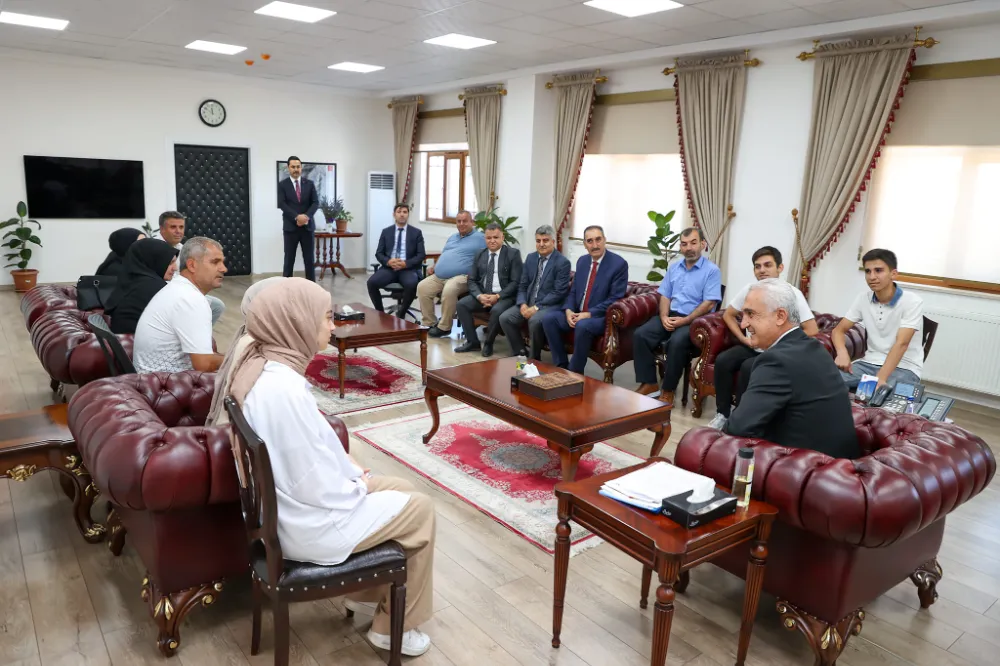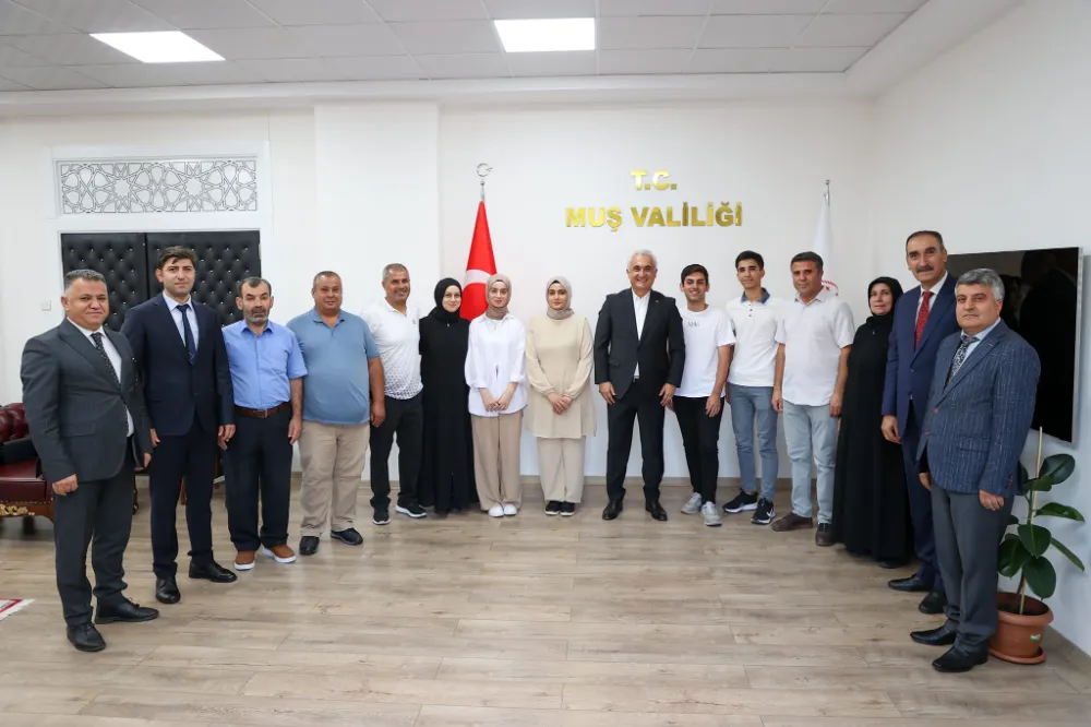YKS Sayısal/Sözel/Eşit Ağırlık ve Yabancı Dil alanında Muş il birincisi olan Muş Fen Lisesi Öğrencisi Sena Emre ve Samet Yasun, Muş Anadolu Lisesi öğrencisi Cennet Maman, Selahattin Eyyubi İmam Hatip Lisesi öğrencisi Muhammet Uçan ile aileleri ve öğretmenleri, Vali Avni Çakır’ı makamında ziyaret etti.