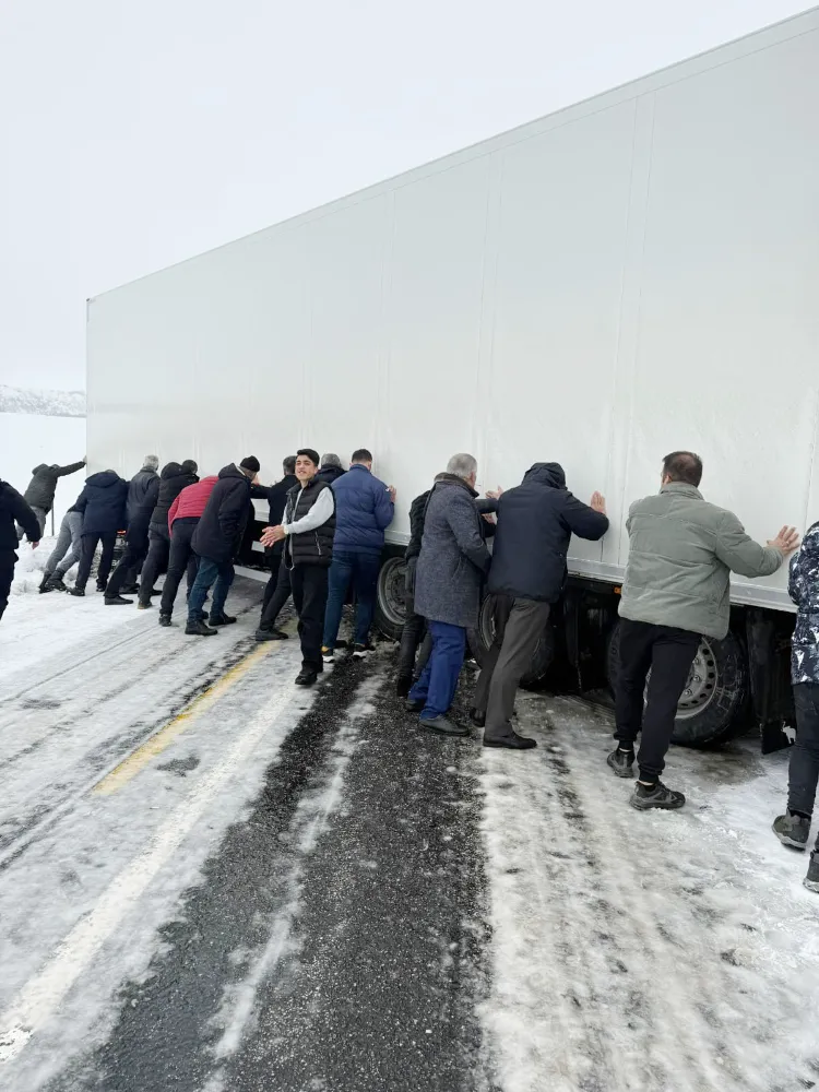Olayın ardından yolda uzun araç kuyrukları oluşurken, çok sayıda sürücü araçlarında beklemek zorunda kaldı. Durumun bildirilmesi üzerine bölgeye jandarma ve Karayolları ekipleri sevk edildi. Ekipler, hem trafik güvenliğini sağladı hem de kayan tırın bulunduğu yerden kaldırılması için çalışma başlattı. Yoğun uğraşlar sonucu tır bulunduğu yerden kurtarılırken, karla kaplı ve buzlanma riski bulunan yol üzerinde tuzlama ve temizlik çalışması da yapıldı.