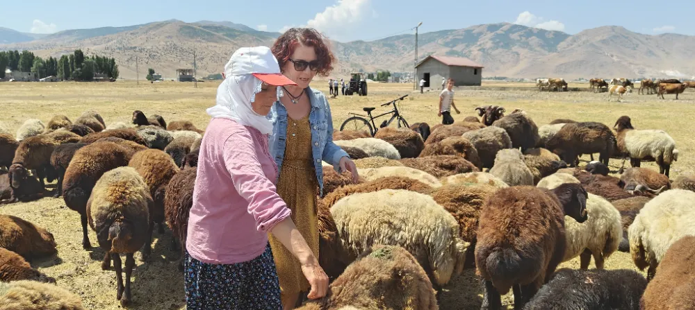 YALOVA'DAN BİSİKLETİYLE MUŞ'A GELEN AKTİVİST KADIN, BERİVANLARLA BİRLİKTE KOYUN SAĞDI